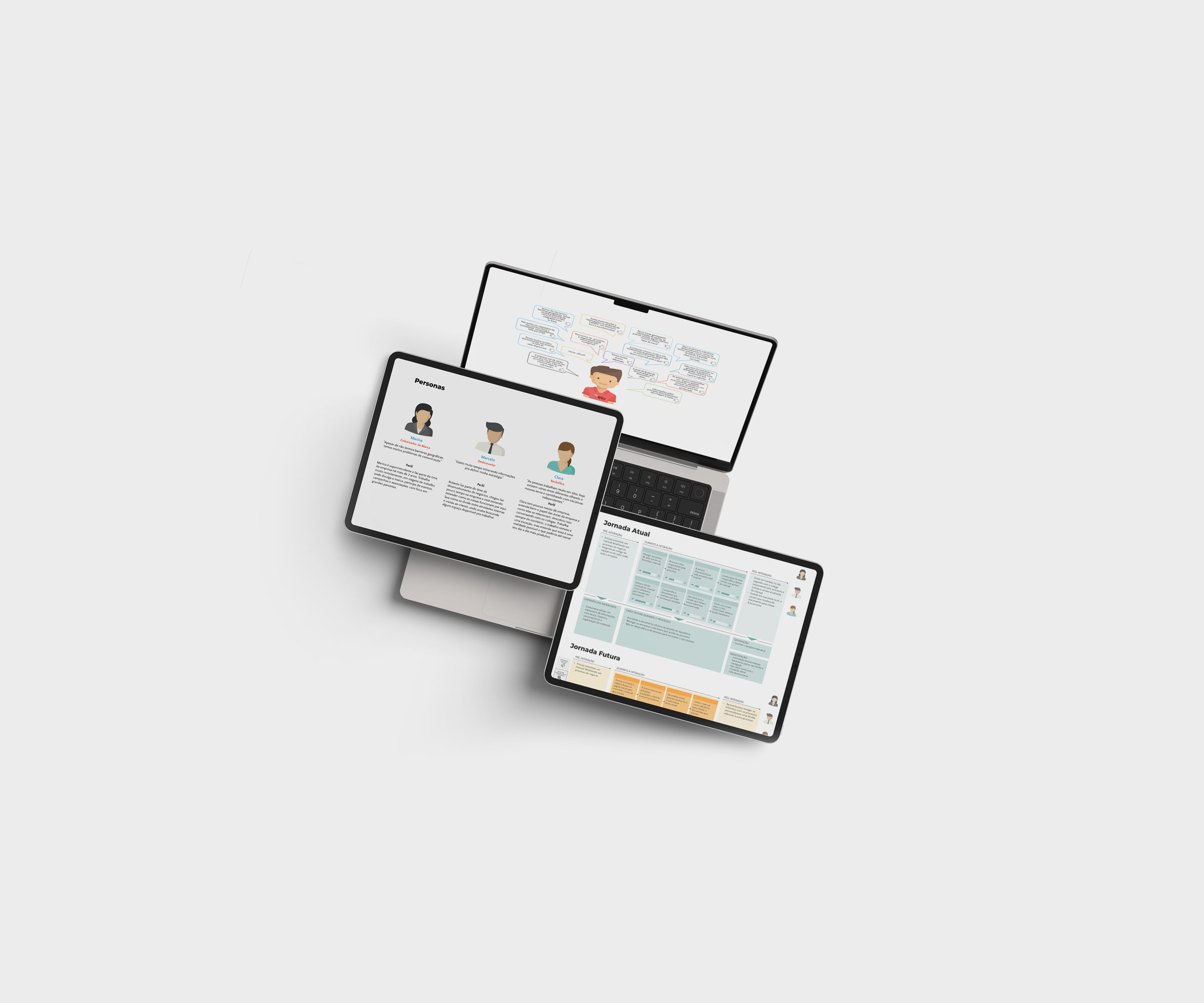 In this project, I was responsible for defining, guiding, and supervising all design activities, working closely with the technical and product teams. Initially, the idea was to work solely on an intranet, but the client requested a broader scope, so we decided to apply the same method while taking a wider look at how all departments operated.